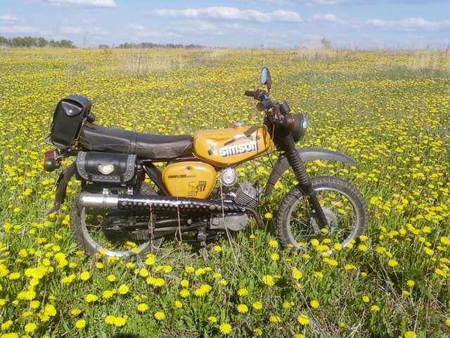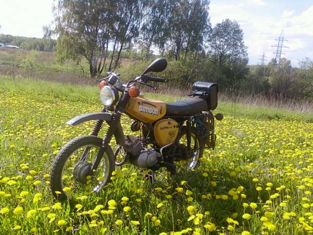 Тоже люблю мелкую двухколёсную технику. Вот на этом красавце в нынешнем году на коп катаюсь. Собрал его этой зимой из попавшего ко мне в руки полностью убитого и разукомплектованого. Теперь он радует меня и работает, как зверь. Легендарная мото-оружейная фирма Симсон. Модель S50B выпущена в ГДР в 1978 году. Мотор трёхскоростной на 50 кубов. Полее поздние уже на 4-х и 5-ти скоростных моторах были. Всем доволен: лёгкий, надёжный, отлично управляемый. Для недальних поездок на коп - лучше не придумать.