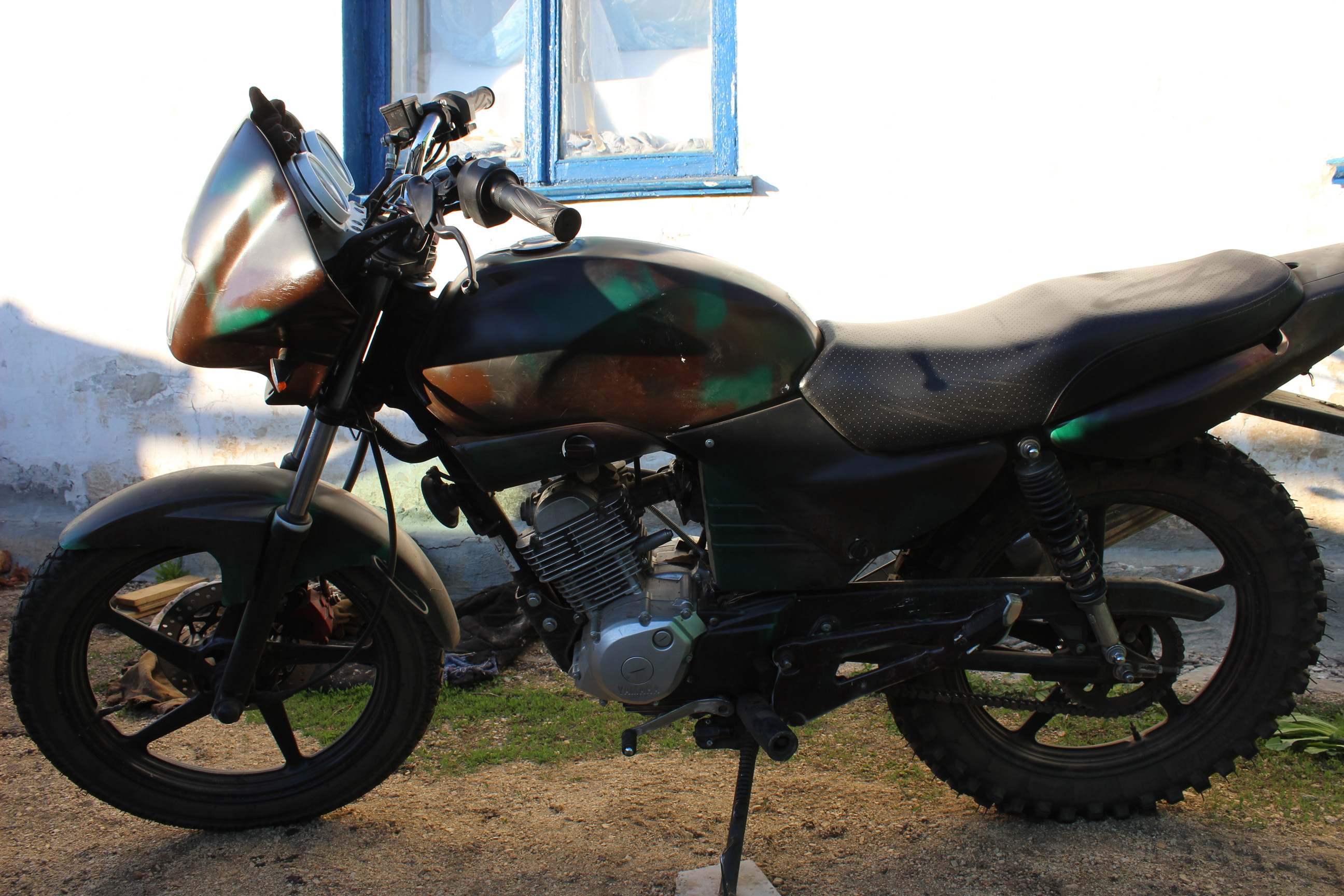 всем мотоводам привет!!!--мой мото чисто для копа ))-сзади проставки поставил -задрал немного задок -крыло переднее приподнял -фото до поднятия -конём доволен ,недорогой ,экономичный ,не ломучий -ксенон ,свеча иридивая ,масло мотюл 15W-50 ,аккум варта 6А гелик -вообщем что надо -хочу тур эндуро для леса ,пашни и гор -но пока не определился с выбором--в основном рулю по степям ,лесам ,горам -в грязь не лезу -но несколько раз попадал под ливень ,дорга кисель ,тихонько движешься по траве и норма -за один присест проезжал до 100-160 км по пересечёнке -расход 2-2,5 литра на сто -бак 13 литров -мот для разведки в основном