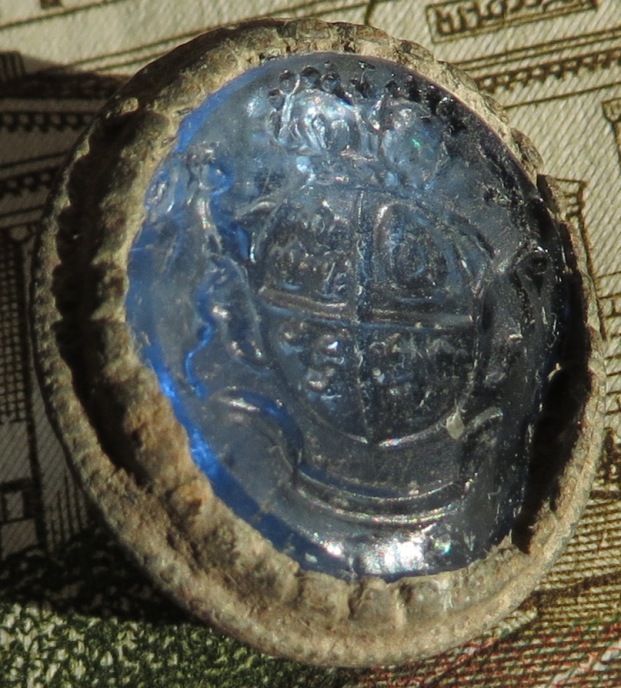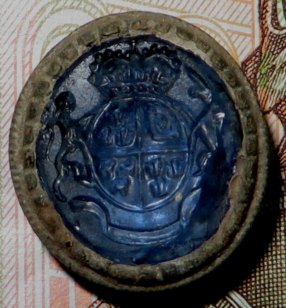 Дешевая оправа, изображение на стекле - не резаное, а похоже оттиснутое по матрице (нечеткое) - кндь вариация на тему реального герба (т.е. псевдогеральдика)
