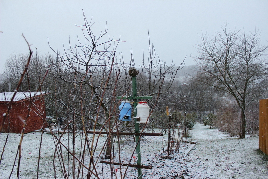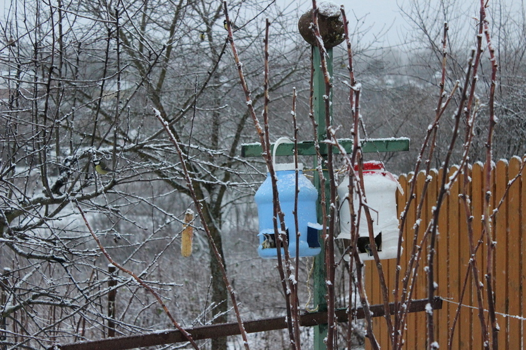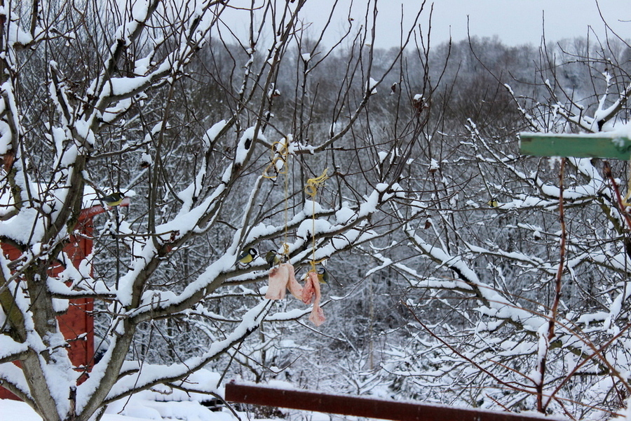 Разведчики. Подлетали синички, гаечки и лазоревка. С фото проблемы, близко не подпускают. Да и фотик новый, зума почти нет.
