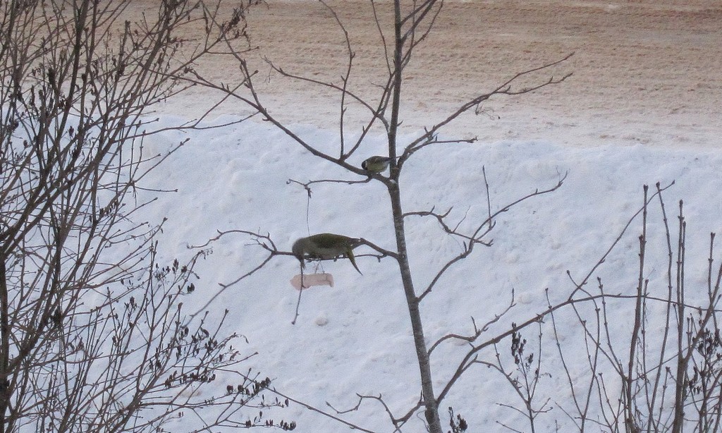 В наших краях тепло, но синички уже припёрлись во двор, знают что кормить будут.