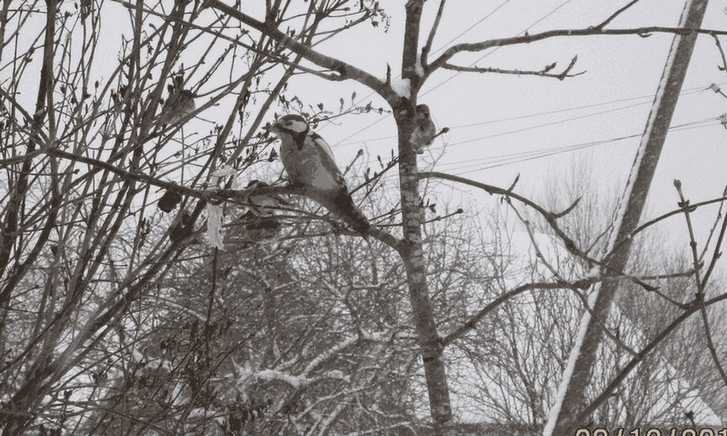 Четвертый раз за зиму скатался на рынок и прикупил очередные пять килограммов семечек подсолнечника. Да у тёток знакомых выпросил шкурок свинячьих со слоем сала, безвозмездно - т.е. даром. И теперь можно развлекаться , фотографируя прилетевших лопать птиц прямо через окошко, благо посаженная мною же лиственница до нашего этажа подросла...