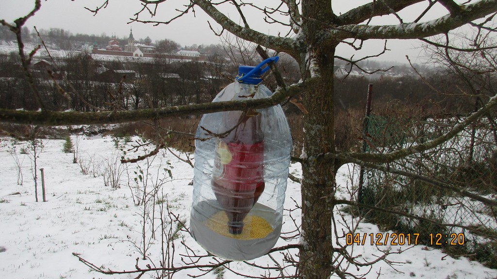 QUOTE(BPD @ Dec 17 2017, 20:54) Тут главное не соорудить даже, а кормить регулярно - семечки нежареные и несоленые, сало (несоленое!), сливочное масло синицы ну очень уважают. Удачи! Дык синицы у нас какие-то не такие, сало провисело несколько дней, ноль внимания на него. А вот семечки уважают. Вчера уронили кормушку, так на новую тоже ноль внимания. Нашел все же пропажу сегодня, повесил-сразу налетели. ![]() ![]() -------------------- ...Только в России жопа это не часть тела, а- событие...