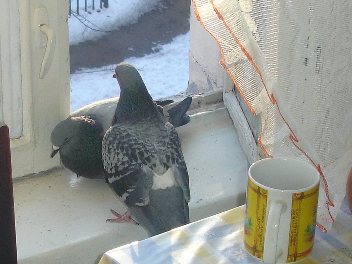 Жили мы тогда на съемной квартире... Тихий хрущовский район Москвы, полно зелени, бабушки на скамеечках у подъезда - вобщем всё как во времена Советов, так сказать, Советский оазис Под окном растет вишня, которая цветет и плодоносит каждый год, безумно красивые каштаны, которые тоже никому не мешают и спиливать их никто не собирается... Долгое время никак не могла понять, почему, когда я выхожу на балкон покурить, на вишню сразу слетаются мелкие птахи, а если курю на кухне, то на козырек окна сразу прилетают голуби. Думала, может они тоже курят, ан нет... они все ждали когда я их кормить начну. Раньше в этой квартире жила старенькая бабушка, она птах прикормила.... Ну так вот, вобщем, дошло до меня что они жрать просят нескоро Голуби между собой устраивали такую свару на карнизе, что открыв створку окна, можно было запросто какого-нибудь голубя пощупать, в пылу драк никто и не замечал. Дрались они так до тех пор, пока не отвоевал этот карниз один боец - голубь с одним глазом. Всех гонял Наступила весна... Одноглазик просек, что за нами можно наблюдать с балкона там из нескольких прутиков свито гнездо Набираю тел. мужа, говорю : "Я ,конечно, все понимаю, но зачем так шутить-то?" .Он : " Не понял?!!" Ну, и выяснили, что это вовсе не розыгрыш - это жизнь, вот такая птичья жизнь...на полу незастекленного балкона А дальше было грустно. Мои голубь с голубкой больше не вернулись, как я их не ждала.... Я их спугнула, когда первый раз после долгой зимы решила открыть балкон. |