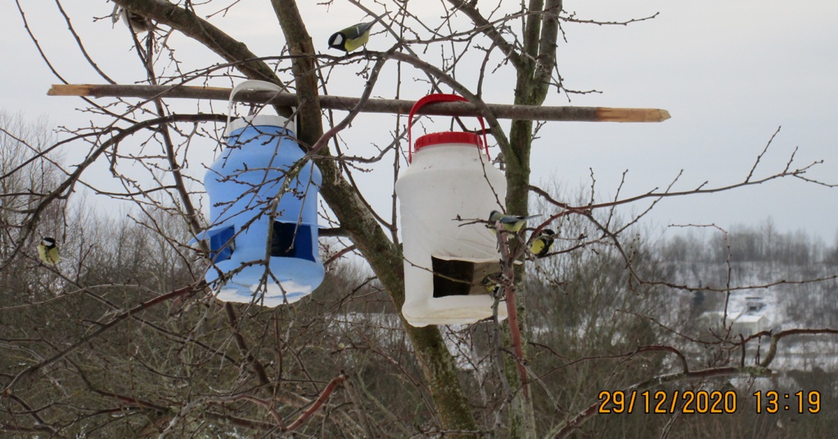 У меня продолжаются битвы за кормление синиц в черте города. С обнаглевшими голубями, покушающимися на кормушку пришлось смириться. Но теперь возникла, неожиданно, новая проблема от представителей двуногих. Некая девица постоянно стала сыпать в кормушку пшено. Синицы его не клюют. Приходится его высыпать голубям. Сегодня она засыпала его в перемешку с творогом, эта масса замёрзла и перекрыла отверстия подачи семян подсолнечника. Я её увидел, орал из окна, она услышала но протупила, не поняв откуда к ней обращаются. Приходится каждый раз после неё чистить СВОЮ кормушку от её "благотворительности". Привесил к кормушке записку с просьбой прекратить. Если и это не поможет, придётся отлавливать в живую. Ну не ж..па ли?