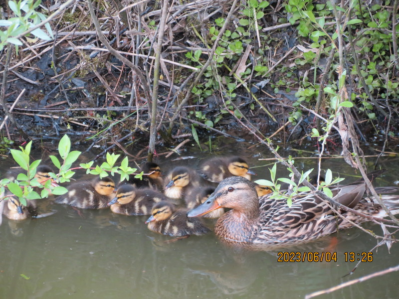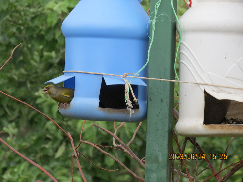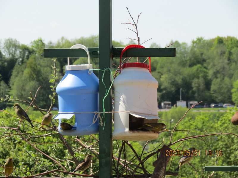 В этот год где то в июле закончил подкармливать, семечки закончились. Птичек не меньше чем зимой было. А зеленушек вообще много. Ещё утка на прудике с выводком появилась, дак хлеб-булку кидал.