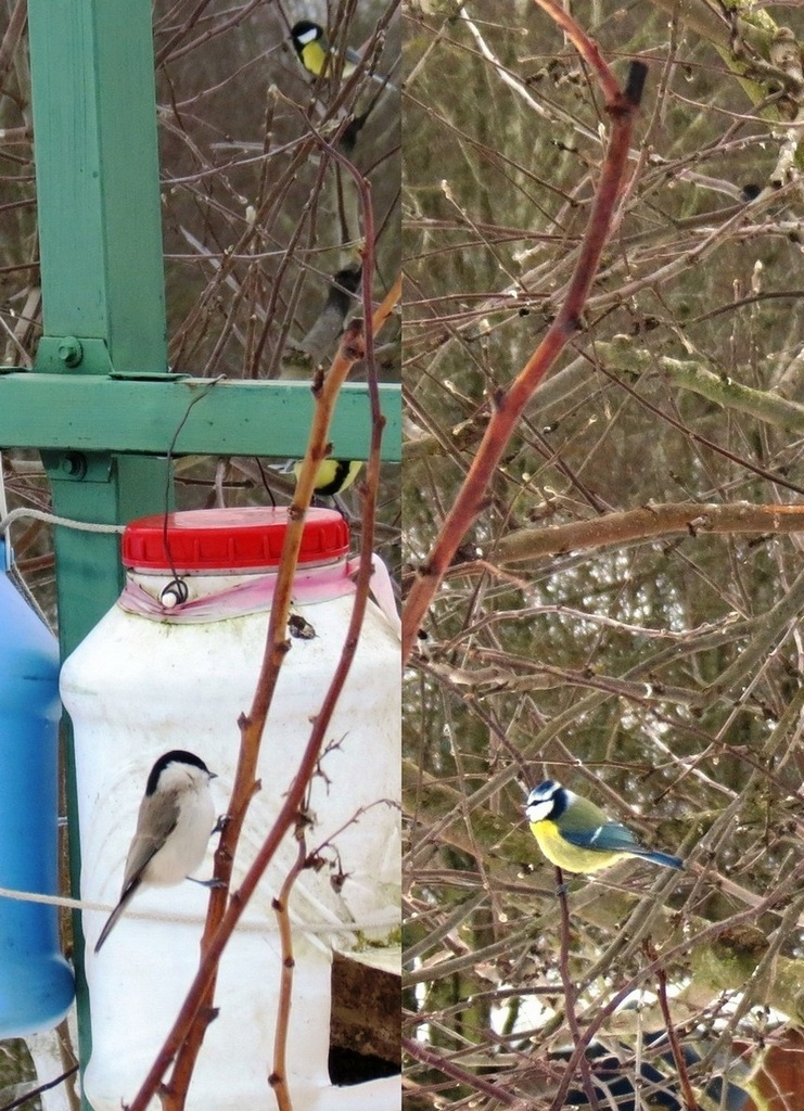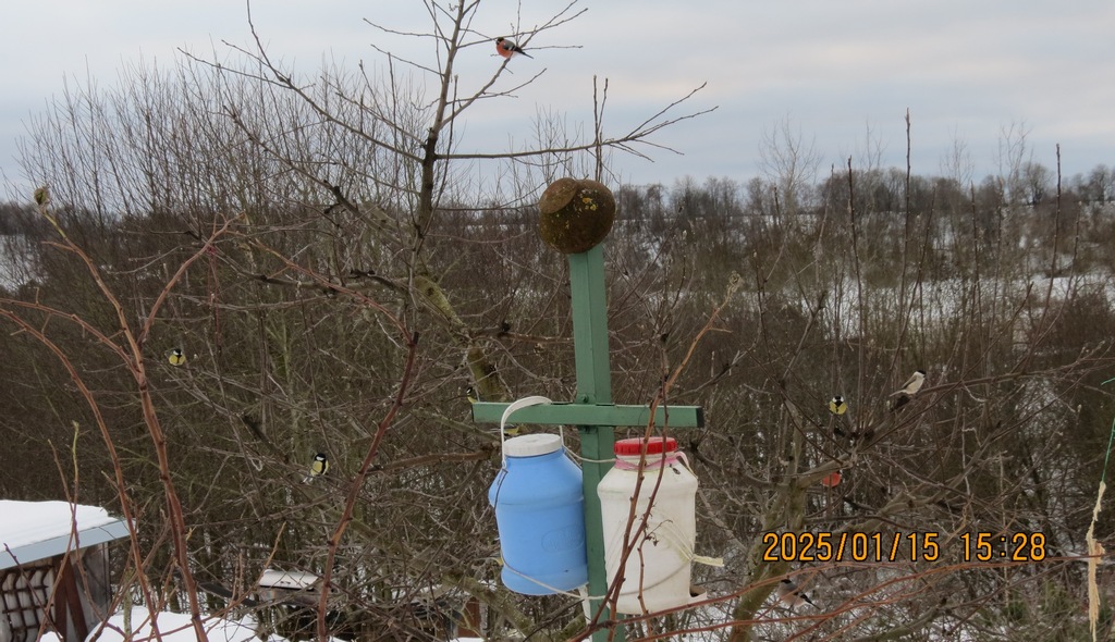 Начал кормить с ноября семечками. На сегодня слопали мешок кг 30 плюс кг20 с того года остатки. Надо подкупать. В основном кормятся синица большая около 30 птиц, гаички 2шт., лазоревка 3шт., воробьи полевые около 50-и, домовых нет, а раньше было несколько и зеленушки по утрам-много. Иногда прилетает один дубонос. Снегири прилетали в начале зимы, но кормушку проигнорировали, может из-за того, что тепло в этом году. А прошлой зимой кормились чечётки, стая штук 50, в этом году их не одной не видел. Дятел тоже семечками не брезговал, сейчас прилетает, но в кормушку не лезет. Той зимой три вида ястреба паслось, синиц пять штук прихватили, это что сам видел и ещё воробьиный сычик воробья слопал прямо под кормушкой. В этом сезоне хищных птиц не наблюдаю.