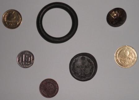 Очень много приятных моментов подарил прибор Кощей 20, особенно когда попадается монета, всё равно какая. Эти ощущения знакомы каждому из нас. МД покупал в Хмельницком. Спасибо ребятам, не подвели. "Советы" были найдены в разных местах: возле старых магазинов, ставков, речек и в старых хуторах. Глубина на 5 коп. не более чем 35 см. в статическом режиме. В динамическом приблизительно 25 см. 1-2 коп - 10-15 см., не больше. Прибор - достойный по такой цене. Может есть и лучше, я не спорю. Хочется поблагодарить производителей. Но один недостаток: в открытой ямке на штык- полтора монету не видит. Если бы не этот недостаток, всё было бы ок. Хотелось бы спросить за штык-нож и монеты из рисунка №1. Особенно брак на 2 копейки. Хочется пожелать всем хороших находок и приятного отдыха.