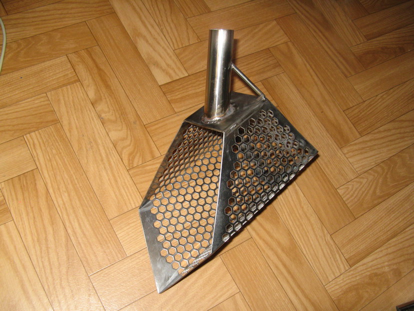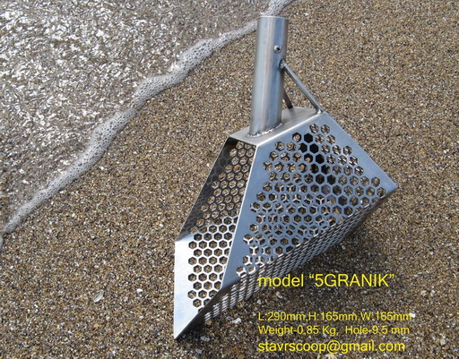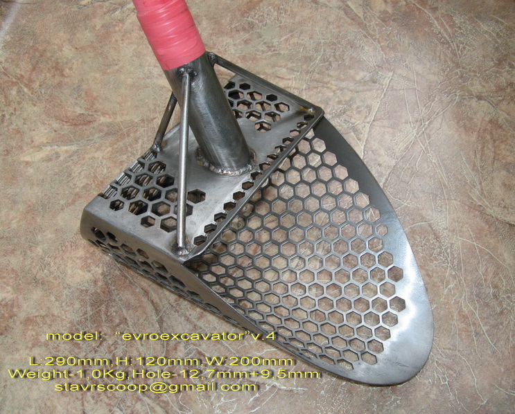 Приобрел ромбик, стандартных размеров. Впечатление полученное по фотке полностью подтвердилось - конструкция ажурная, но прочная. Легкий. Нержа хорошая, ни ногой ни тем более пальцем нигде не прожимается, не прогибается. Песок вымывается с фантастической скоростью. Понял, что все предыдущие совки-совочки были просто жалким онанизмом