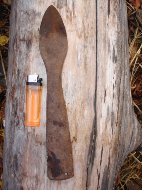 Найден в лесу Белгородской обл.сопутка только кованные гвозди(ну это пока),не по далёку нашёл топок – тесло бронзовый!Вот такой
