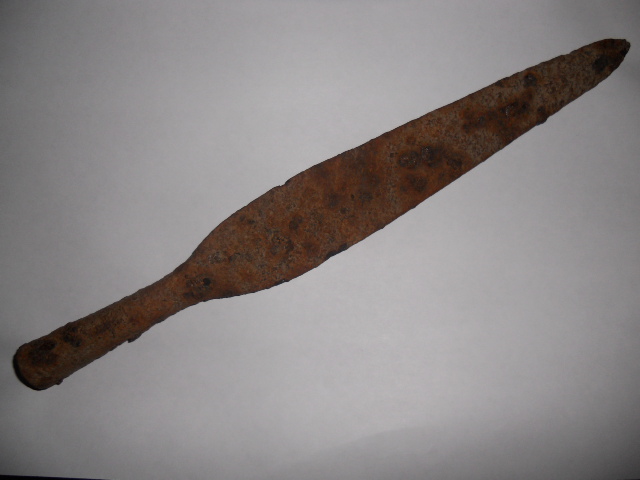 Нашел такой наконечник. Место находки Харьков. Верховой. Найден возле немецкой траншеи, поэтому сопутка по ВМВ (когда копали траншею - выбросили?). Общая длина 29,5-30 см, длина втулки ок 7,5 см, диаметр втулки ок. 2 см, ширина лезвия в самом широком месте ок. 3,5 см. Сам определить период не смог, понял только, что очень распространен от КР до 17 века. Можно-ли определить точнее? Вложенные эскизы изображений |