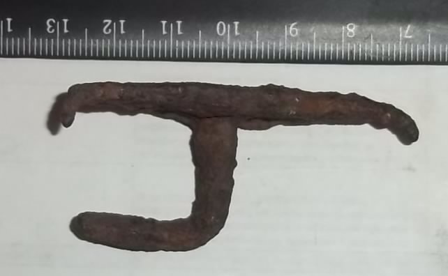 Вот на днях достал Скифа. Меня удевил сохран металла, его даже чистить не пришлось, жаль только покоцан маленько. А так выглядит как будто его вчера отлили, даже обломок древка не сгнил а превратился в камень. Интересно узнать возраст и что за метал такой живучий?