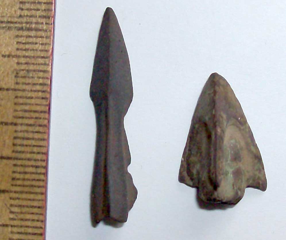 Фото не очень четкое. Трехлопастной только второй. Первый - трехгранный. Фото не очень, но примерно можно сказать, что оба относятся примерно к 6-5 вв. до н.э.
