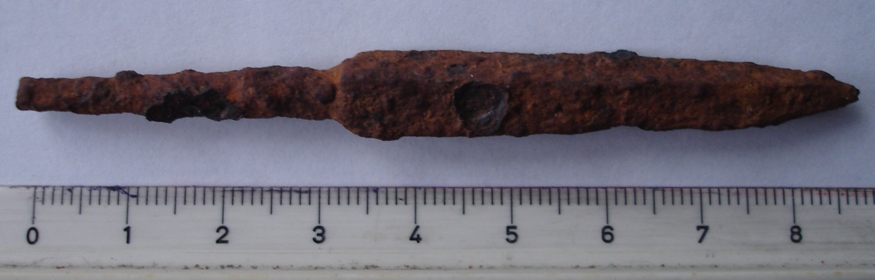 Да, забыл добавить: наконечник железный , найден случайно при посадке картошки ,внутри сердцевины- полый и три отверстия которые, если смотреть сбоку, совпадают на просвет (возможно при полете издавал свист или полость служила для доставки яда).Найден в западной сибири.