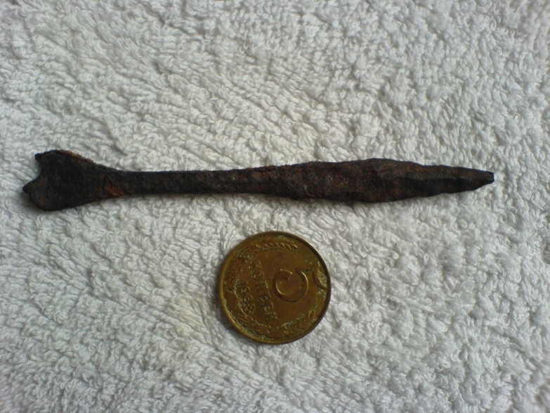 Очень распространенная форма наконечника. Применялся для борьбы с воинами в кольчугах и кожаных доспехах. Исходя из формы можно предположить, что данный относится к 5-8 вв. н.э.