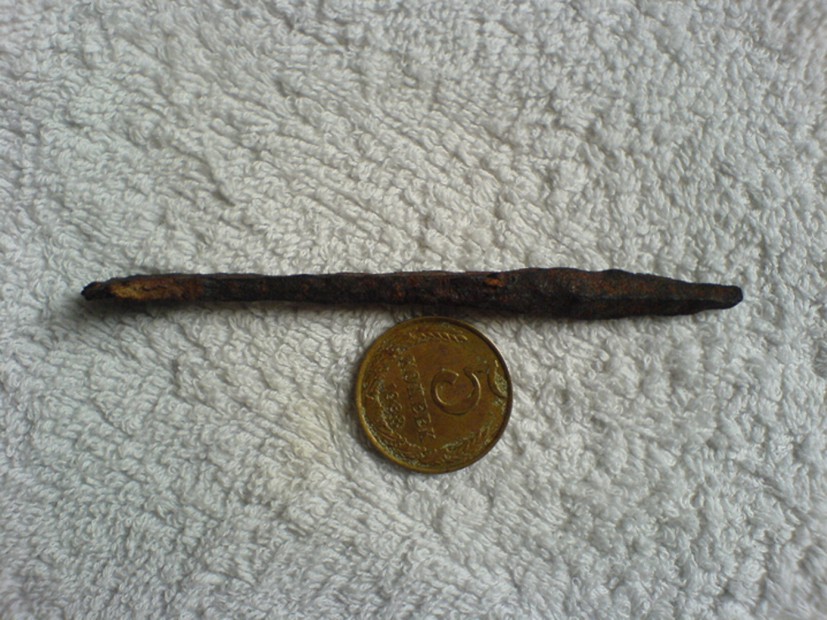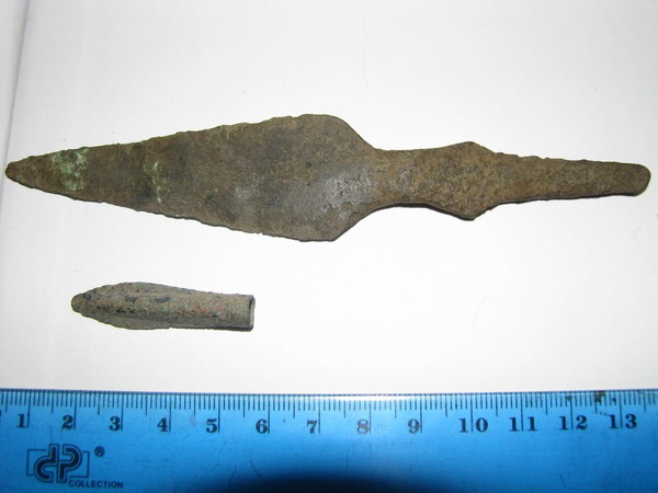Может как наконечник использовался? Хотя мало похожий. Материал - бронза. Мнения разнятся. Сопутка - скифские стрелы. |