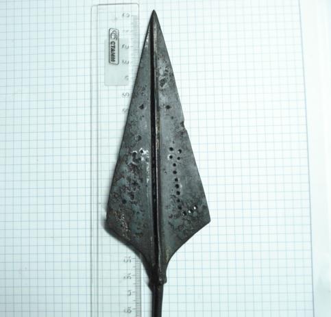 Что интересно на наконечнике какие то царапины оставленные при жизни, так как сами царапины в патине.