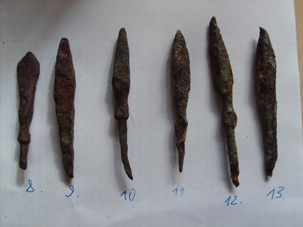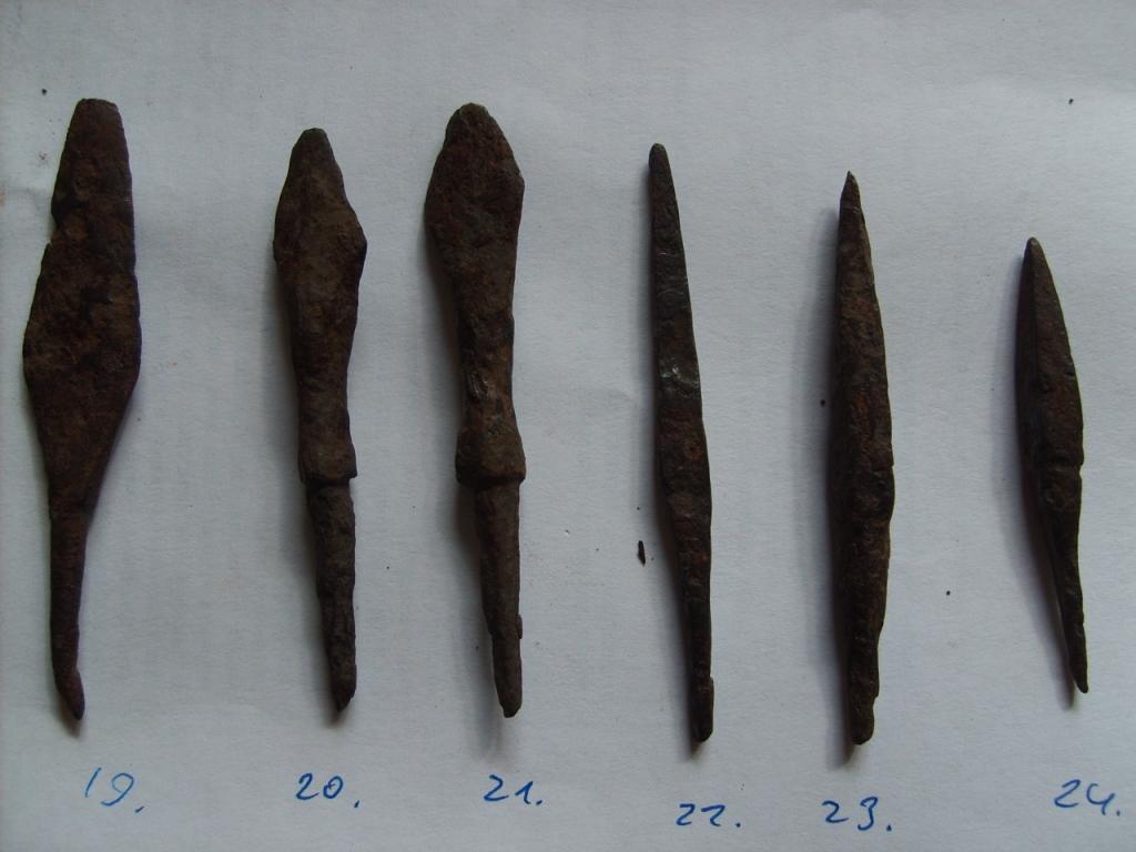9,13 - наконечник ли? 10-12 - типичные наконечники 10-13 вв., часто идут вместе со степняками 14-19 - чуток постарше 8-11 вв. 22-24 - противокольчужные где-то с 9 в. для Вашего региона |