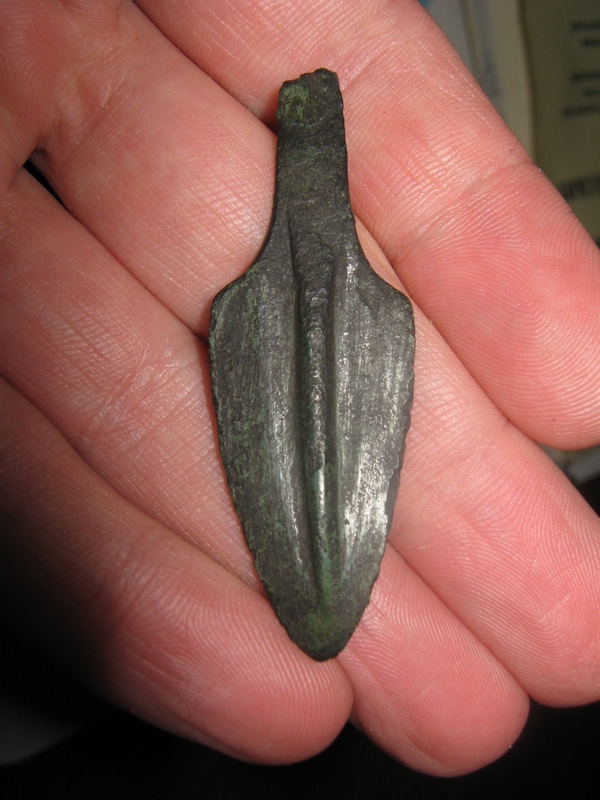По работе Кузьмина, 1966 - двулопасной черешковый с листовидным пером и жилкой, 1400-800 до н.э. Можно его в профиль?