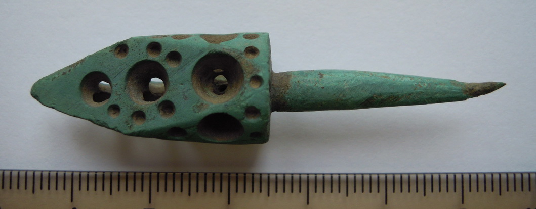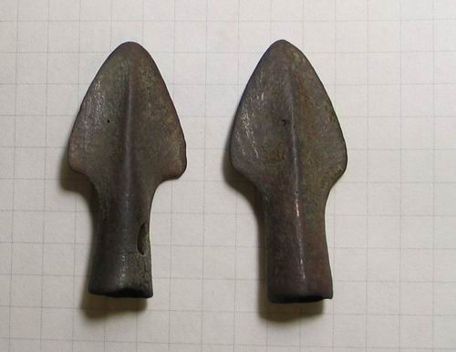Материал бронза, рядом были подняты наконечник дротика как на фото выше, бронзовое зеркало, бронзовые ножи . |