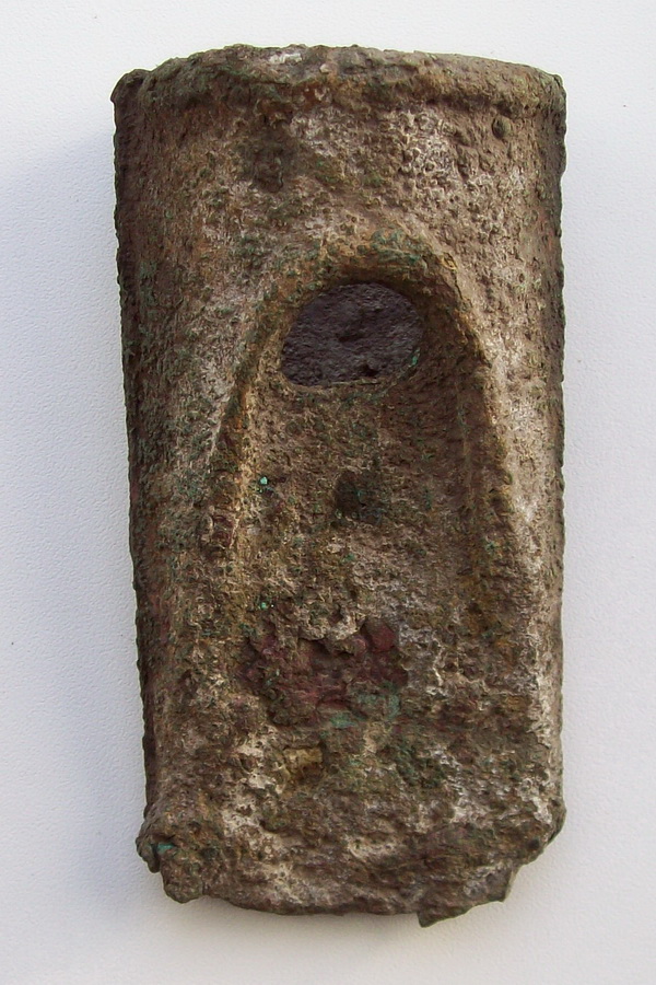 Всем добрый вечер, перебирал свои находки обнаружил сей предмет. Материал наверное бронза. Размер 10 на 4,5 см, толщина у основания 3см, вниз сужается, довольно увесистый. Как мне кажется это топор, на том же месте нашел наконечник стрелы тоже бронзовый. Место находки Алтай.