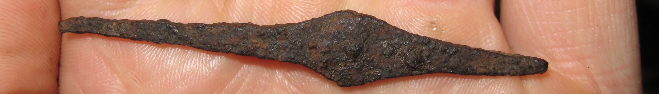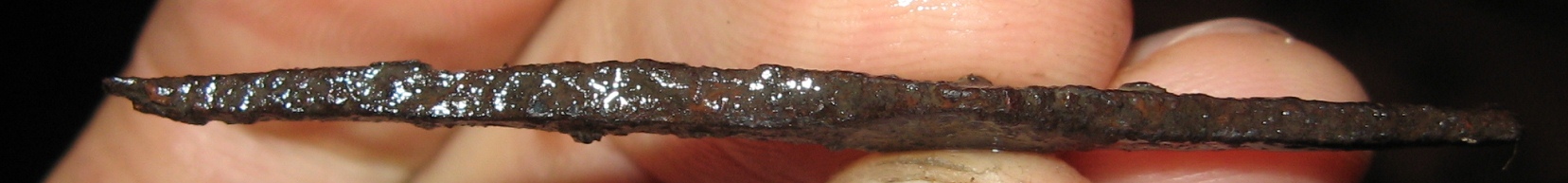QUOTE(SanOk @ May 26 2012, 19:29) Вечер добрый . Поднял вот такую штуковину . Или заготовка под нак или стрелка какая то ? Лес , кавминводы . склон , глубина 20 см . сопутка наки ,ножи аланы ,казачье. С Уважением. Похоже на заготовку нака но отсутствие упора не дает однозначного ответа.Подымал подобные предметы и мне их определяли как заготовки наков. -------------------- Dum spíro, spéro (лат. пока дышу, надеюсь)