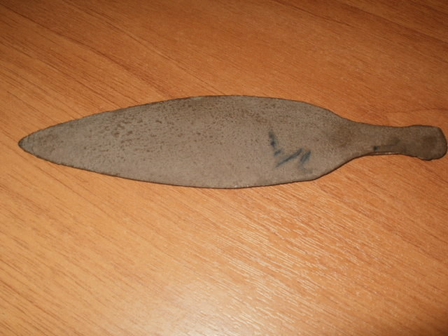 QUOTE(Stiner @ Oct 29 2012, 14:44) Доброго дня уважаемые коллеги! Прошу помощи в определении данного наконечника стрелы, интересна вся информация! Найден на берегу реки в Красноярском крае. Состояние хорошее, железо еще крепкое, местами видна окалина в общем все на фото. Селькупы ИМХО -------------------- Чтение сделало Дон Кихота рыцарем, а вера в прочитанное сделала его сумасшедшим