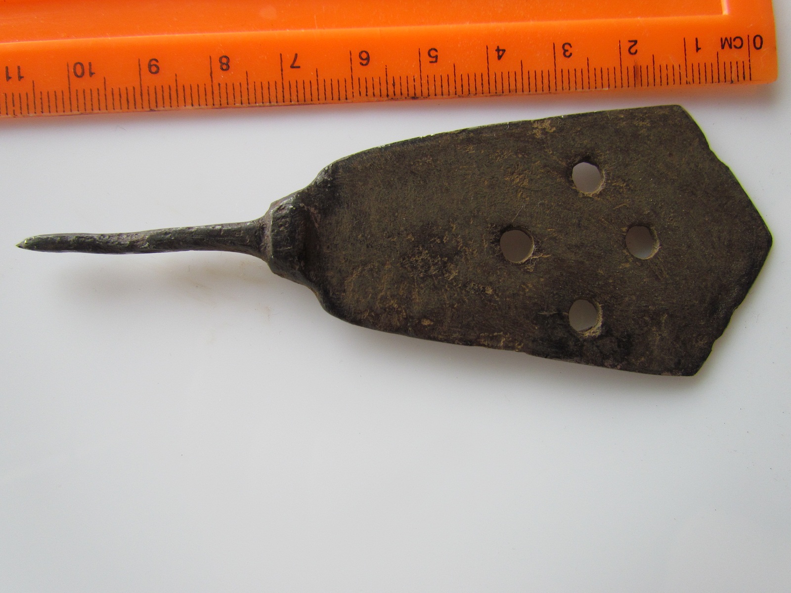 Такие предметы в Вашем регионе попадаются. Посмотрите материалы музеев. Однозначного мнения нет. Мое личное мнение, что это рабочий инструмент, т.к. необходимости в таком оружии, с учетом защитного доспеха того периода, нет.