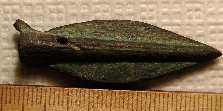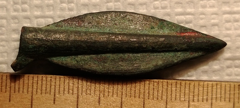 До славян у нас там были юхновцы, а потом пришли вятичи. Но юхновцы то были вроде бы как очень смирные. А по этому наконечнику не скажешь, что он был сделан очень мирным народом. А до юхновцев вроде бы как жили иранцы (ряд топонимов имеют курдские названия).