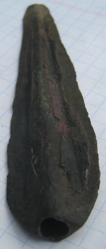Вот вчерашняя находка, предположил как наконечник. Сам наки видел только на фото, по этому для меня это темный лес. Нак бронзовый, чуть больше 9см. Думаю место находки и сопутка здесь роль не сыграют. Возможно кто-то хранил и потерял. (Север Казахстана, сопутка от Николая 1 до ранних советов, маленькое поселение штук 10 землянок было.) Если не ошибся то подскажите пожалуйста, каких времен, часто ли встречается? В общем все что можно по нему сказать. Благодарю! С уважением, Эдуард. Вложенные эскизы изображений |