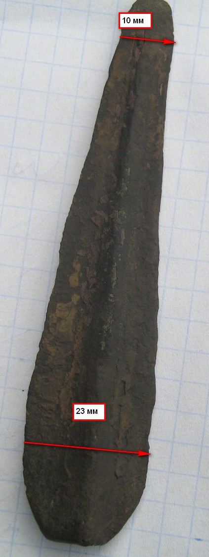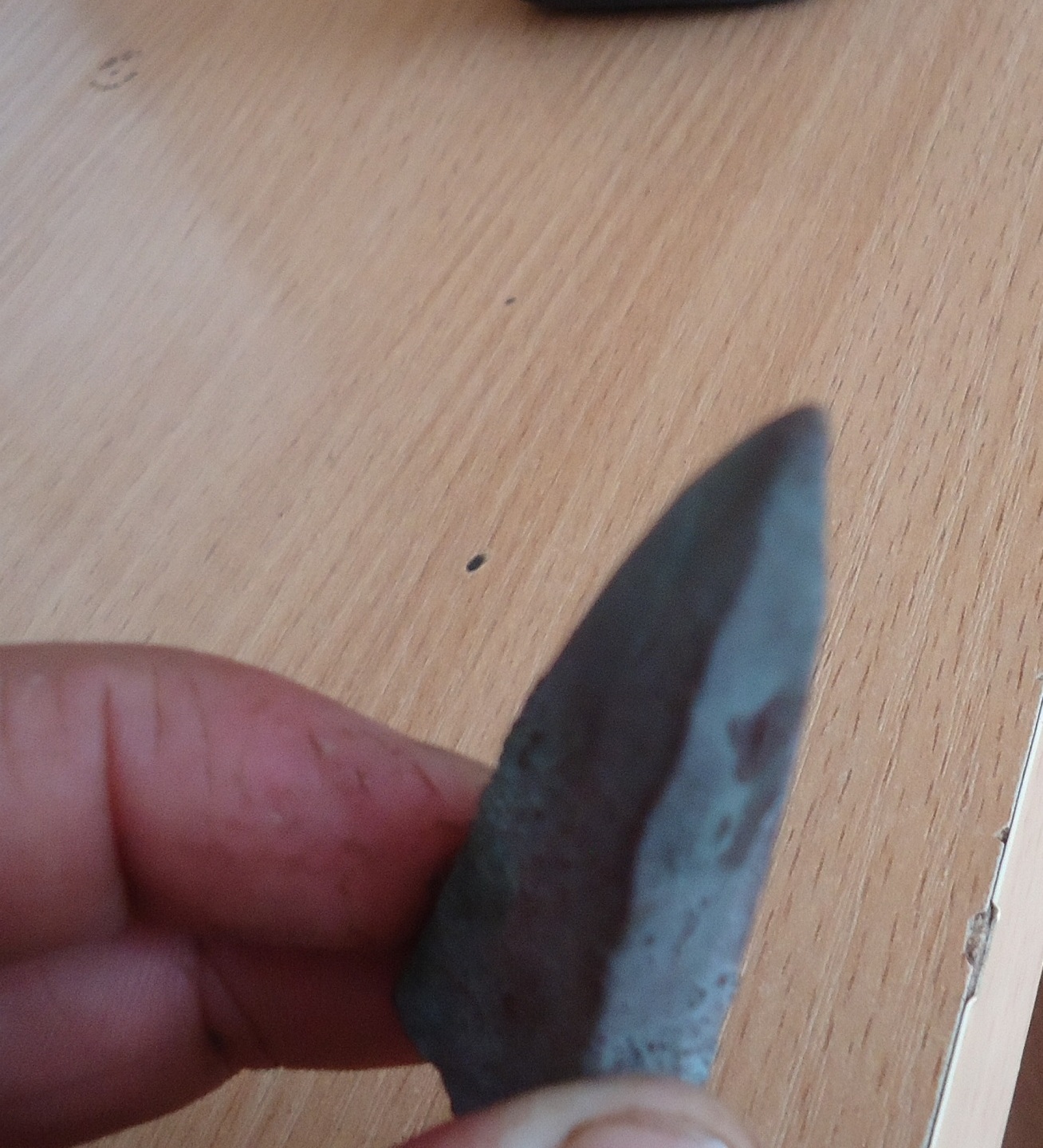 QUOTE(eduard_m @ Jun 1 2014, 15:52) Всем доброго. Вот вчерашняя находка, предположил как наконечник. Сам наки видел только на фото, по этому для меня это темный лес. Нак бронзовый, чуть больше 9см. Думаю место находки и сопутка здесь роль не сыграют. Возможно кто-то хранил и потерял. (Север Казахстана, сопутка от Николая 1 до ранних советов, маленькое поселение штук 10 землянок было.) Если не ошибся то подскажите пожалуйста, каких времен, часто ли встречается? В общем все что можно по нему сказать. Благодарю! С уважением, Эдуард. Похоже дротик поздней бронзы с обломанной втулкой. Есть следы слома? |