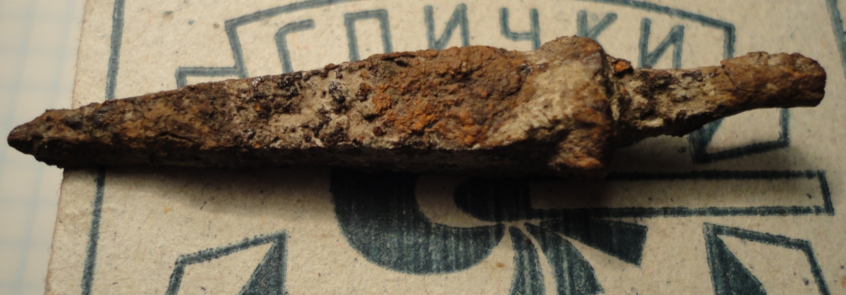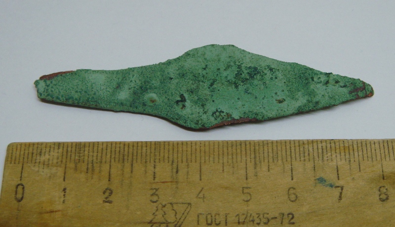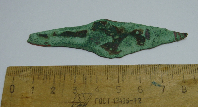 Большое спасибо всем откликнувшимся. Попытался сделать фото получше. ![]() ![]() ![]() Конечно же, когда обнаружилась "буковка", мучения электролизом были прекращены. Сфоткал сопутку. Думаю сей наконечник слегка постарше казацкой пики, хотя и похож сильно. Ржавчины на нем было не меньше, чем на остальных железяках. -------------------- Осколки Челябинского катаклизма, гарантия подлинности. Пока ещё есть.