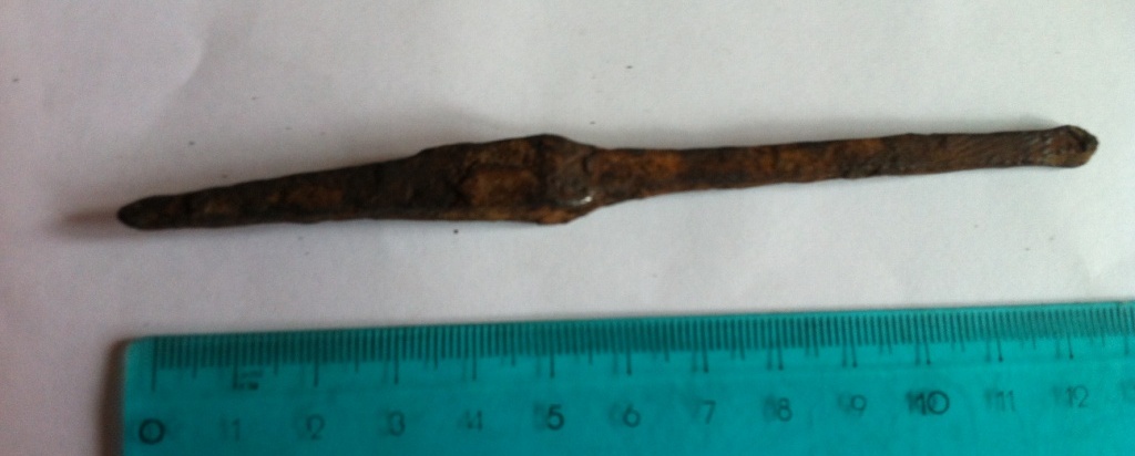 QUOTE(hardcore @ Feb 27 2015, 16:03) Здравствуйте! подскажите,пожалуйста, это наконечник для стрелы или что это может быть? сам не в теме. длина 8 см. четыре грани. проявляет очень-очень слабые магнитные свойства,вероятно,сплав из железа и еще чего-то. район находки- Нижегородская область. Была ещё версия - наконечник для палки от лыж Сообщение отредактировано hardcore: Mar 1 2015, 00:20 -------------------- С уважением, Алексей