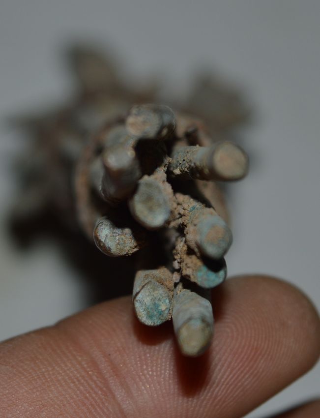 QUOTE(seres @ Apr 17 2015, 13:36) Здравствуйте, подскажите, не томар ли? По находкам сер.17-н.19-го, север Кузбасса. Если по другим наконечникам с того места вопросов не возникает, то вот эти штуки и им подобные, но больше в размере - попадаются, но не придавал им значения, пока здесь фото не увидел. Вот решил уточнить у знатоков. ![]() ![]() Спорные предметы. Те, что сспронзовыми шайбочками не наки, а декоративные гвозди. По остральным идут споры. Плохо то, что в колчанных наборах не попадались подобные. Чаще всего находят в Крыму. |