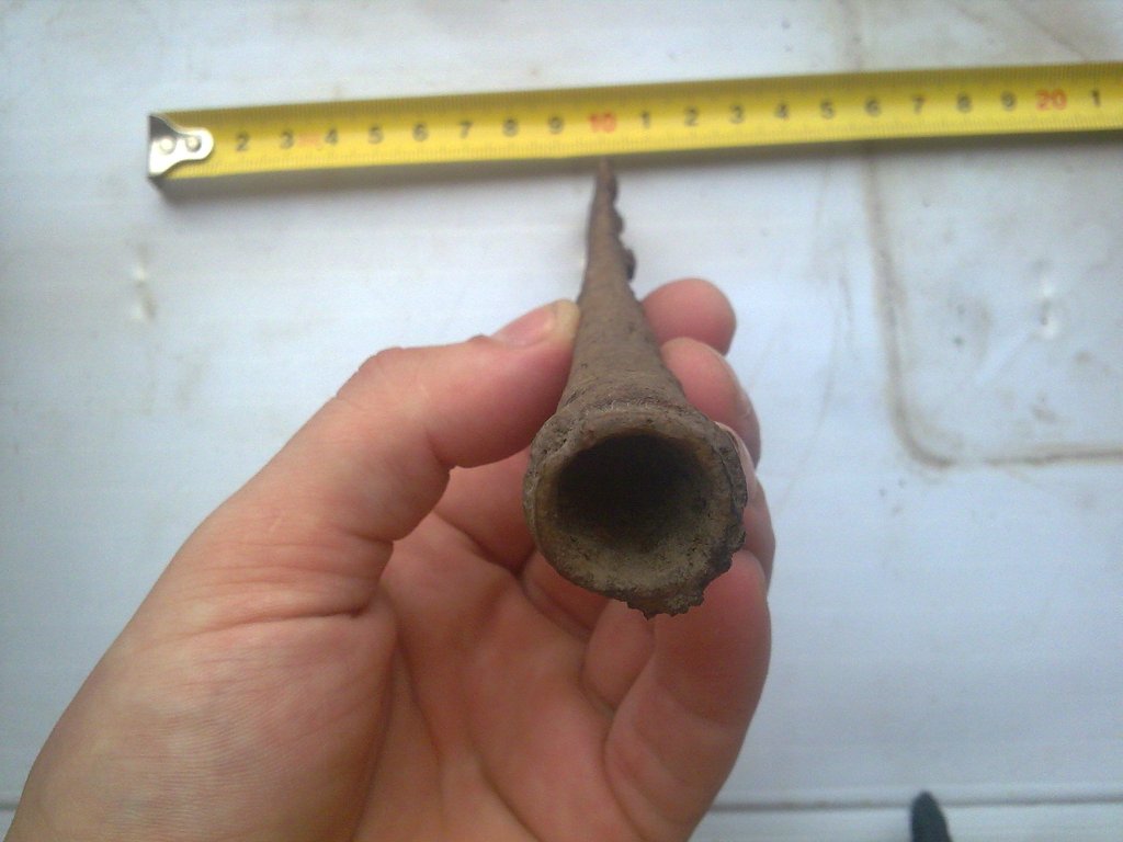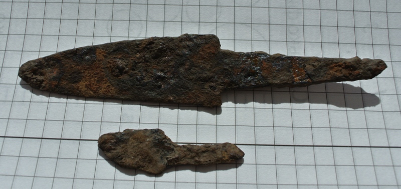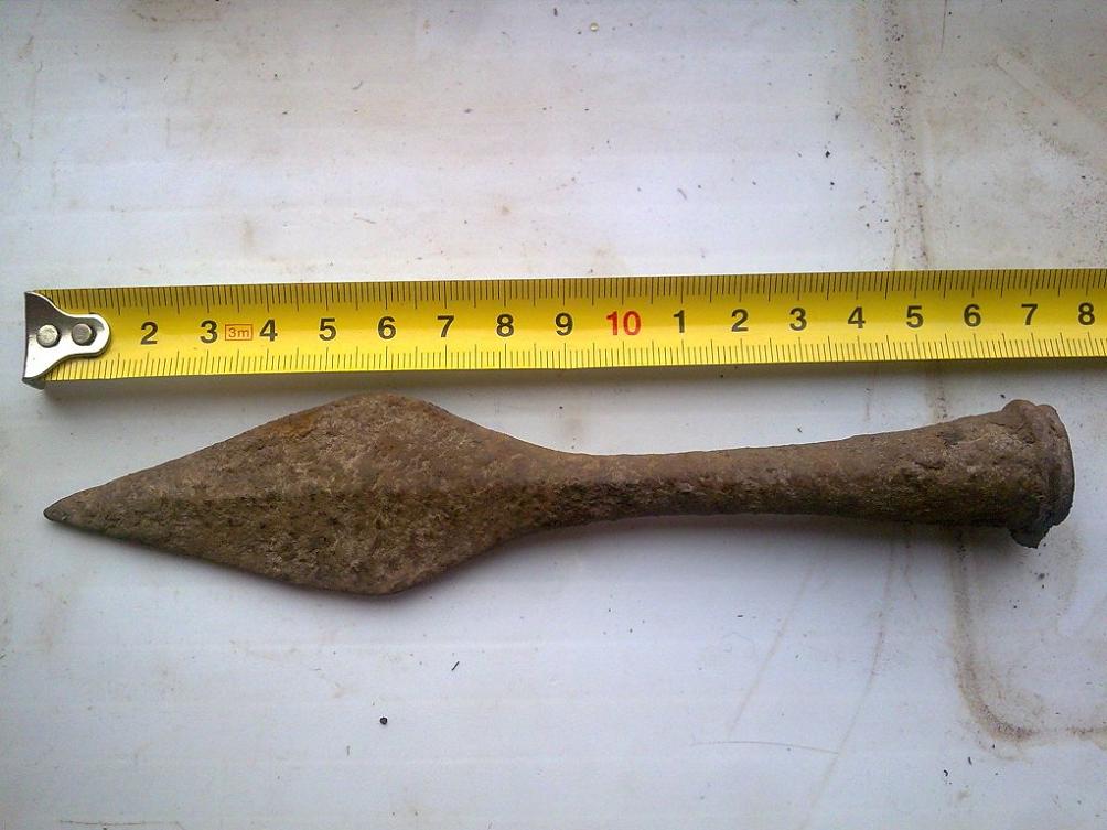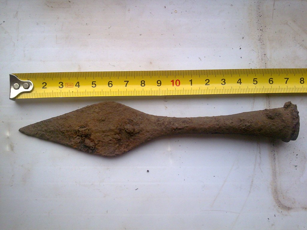 Просьба атрибутировать наконечник копья. Общая длина 26 см. ![]() Найден в глухом лесу. Непосредственно рядом других находок нет. Сопутку (лировидная пряжка, 11-12 века) можно таковой назвать условно - около 100 м. от наконечника. Постороннего мусора, кроме осколков от снарядов, нет. ![]() В 150-200 метрах была найдена еще такая пряжка (10-12 века) ![]() -------------------- В этом мире нет тайн, есть только скрытая правда - правда, таящаяся в глубине.