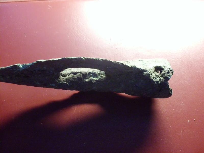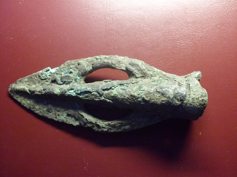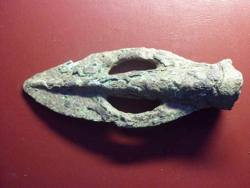 QUOTE(Bazis @ Jul 21 2015, 13:19) Доброго всем здоровья.На рассмотрение выставляю наконечник от копьишка.Бронза 10смх3,6см. Втулка 1,8-2 см. Нужна атрибуция и оценка.Сам думаю-киммерийцы? Срубники, копье с прорезями. |