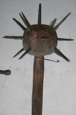 Значит теоретически вот в такие предметы из дерева и вколачивались подобные шипы!
