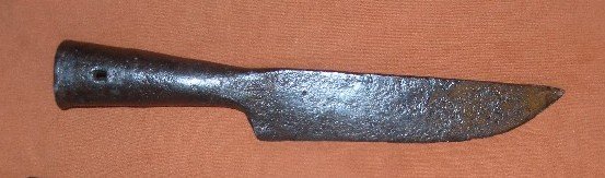 Официально он называется как нож-косарь для колки лучины! Во времена народного ополчения против захватчиков и народных бунтов против эксплуататоров крестьяне массово использовали его как примитивную совню! Подтверждением этому служит то то-что их часто находят на местах древних битв вперемешку с наконечниками копий,дротиков и стрел.