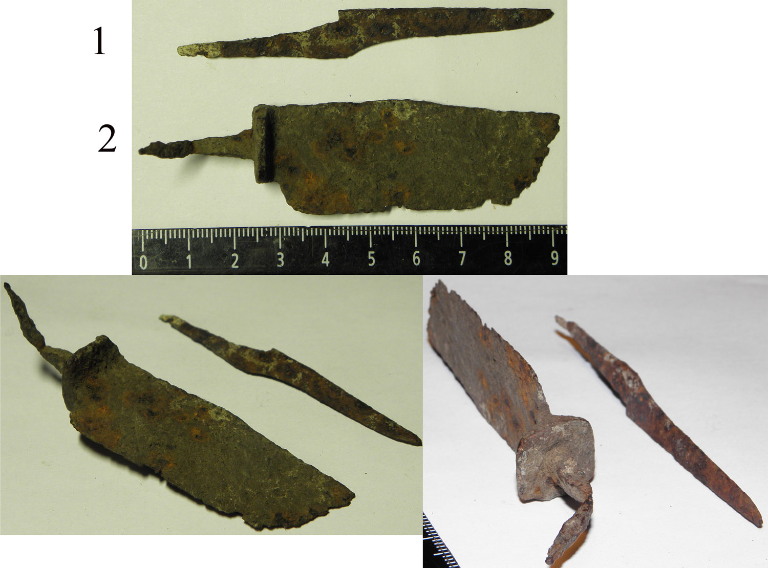 1 фото - это обломанный наконечник копья с плоским лезвием, или это что-то другое? Если да, то чей и какая возможная датировка? 2 фото - это ножи? Чьи и какая возможная датировка? Все предметы найдены в полях в районе Ростова-на-Дону, сопутка разная от скифов (наконечники, варварка), до второй мировой, ближайшие населённые пункты (бывшие и действующие)минимум в 4 км. Заранее благодарю за ответ. Вложенные эскизы изображений |