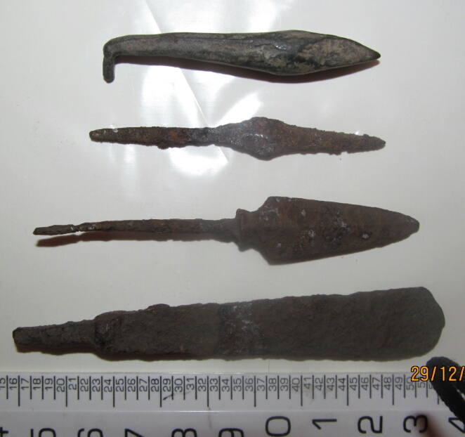 QUOTE(Yorik @ Dec 29 2015, 22:55) 1 - не знаю 2 - скорее всего проколка 3 - наконечник 11-14 вв. 4 - наконечник 9-13 вв. Спасибо большое , жаль пока плюсануть не могу! По поводу номер 2 , там вроде как грани есть , почищу перефоткаю и выложу отдельно , очень похож на маленький наконечник , может птицу какую били? А номером один наверное просто как керном отверстия пробивали ! -------------------- Кто ищет тот всегда найдет!