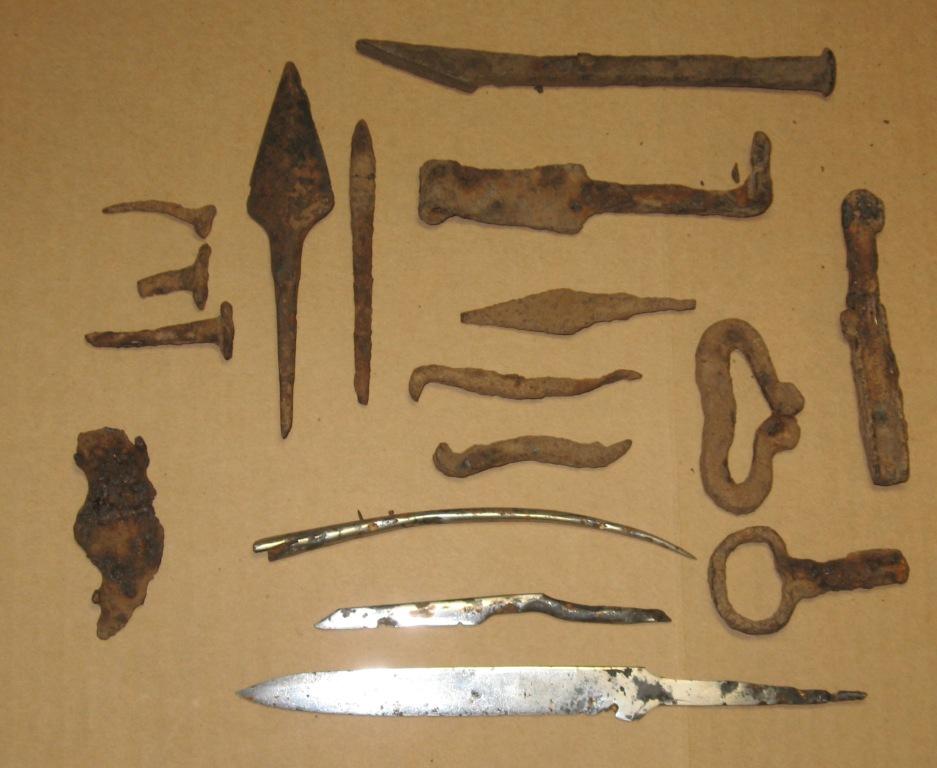 QUOTE(DTI @ Jan 10 2016, 16:44) Вот фото с аналогичного места из той же местности. Это малая часть из того что найдено, Все находки сложил около дерева, но когда стемнело найти не смог, там были срезни, подковы, гвозди и т.д. Находок из цветных металлов очень мало: Ордынская ременная пряжка, 2-e чешуи Василия III, 4 Грозного и 1 М.Ф. Монет удельного периода не нашлось. Место, похоже, было обитаемо в два периода в домонгольский (поздний) и в XVI веке. Были там разгар лета, сильно мешали заросли малины, костяники. Этой весной ещё походим. Фото никакое и не с того места. Но кресало идет по 10-12 вв. |