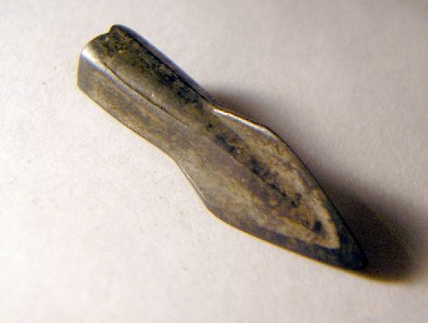Здравствуйте! Вот такой наконечник махонький. Мне в первый раз попадается, предполагаю - сарматы. Регион - Северный Кавказ, сопутка ничего не говорит - разброс слишком большой. Помогите в определении, пожалуйста.