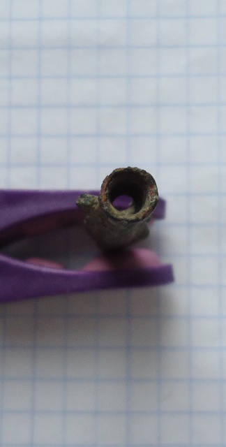 Доброго дня всем!Уважаемые специалисты,подскажите по датировке и принадлежности данного наконечника,диаметр отверстия приблизительно 5мм.Найден в Краснодарском крае,на правом берегу р.Кубань,на месте распаханного хутора.До этого товарищ находил на этом месте нак,но этот по форме как то изящнее выглядит,тоньше что ли.Спасибо всем ответившим.