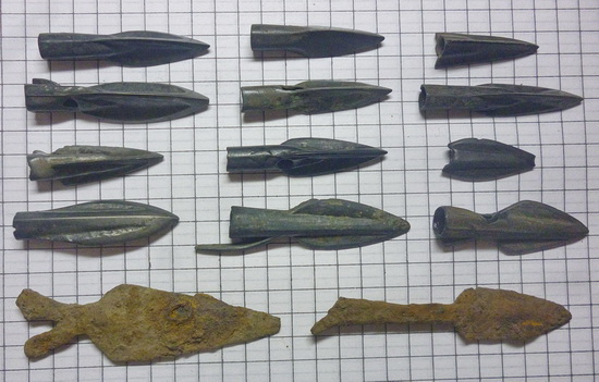 QUOTE(Жулан @ Mar 14 2017, 05:44) Здравствуйте! Уважаемое сообщество,прошу оказать помощь в определении и оценка наконечников?Регион-Курская обл. Хороший набор наконечников скифского типа 7-6 вв. до н.э. Железные - сарматского типа ("рыбки") 2-1 вв. до н.э. |