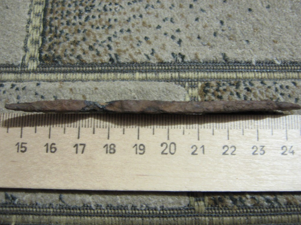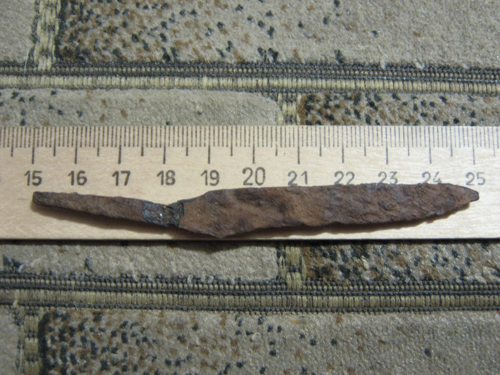 Неподалёку от моего дома на одной из улиц (восток Москвы) вырыли небольшую траншею под кабель. Пользуясь случаем, рано утречком пробежался вдоль насыпи с прибором; помимо бесценного "шмурдяка", неожиданно попался вот такой бронебойный наконечник. Ржавый, конечно. Как мог, аккуратно его очистил. Помогите с датировкой стрелы. Я предварительно предполагаю его веком XV-XVI, но нуждаюсь в мнении специалистов. ![]() Сообщение отредактировано Westernbourg: Aug 3 2017, 20:46 -------------------- Пытался оставить подпись по-всякому, ничего не выходит. Как вы это делаете?