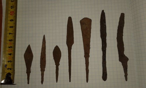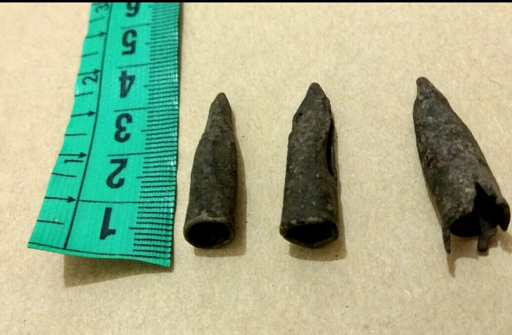 QUOTE(Ulisse @ Oct 23 2017, 21:15) Нужна помощь, но практически уверен что это не наконечники. Подняты в Северном Черноморье на краю хутора начала 20 века. Всего 18 таких примерно одинаковых штук, на небольшой глубине, материал - медь. Часть имеют усики. Похоже оболочки от пуль |