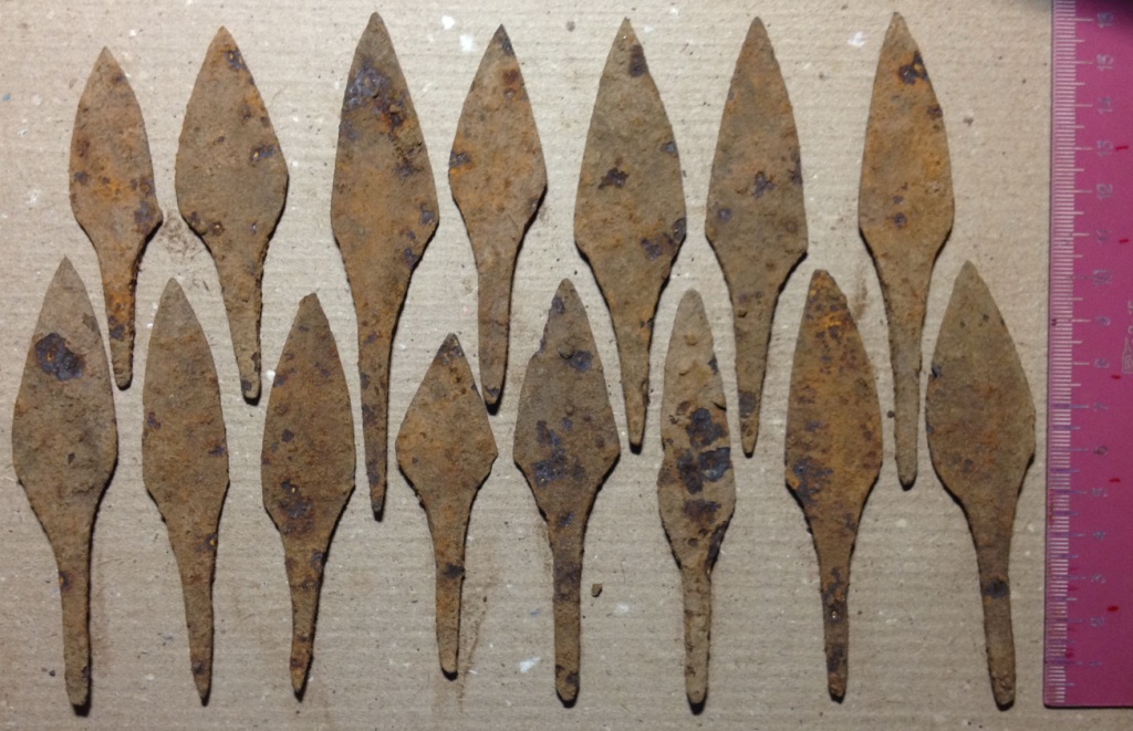 Колчан, возможно, был цельнокожанный. Сохран впечатлает. Железные такого варианта редко, но встречаются - пулевидный