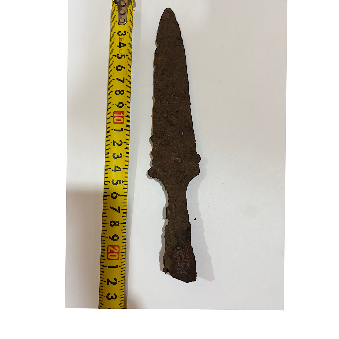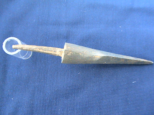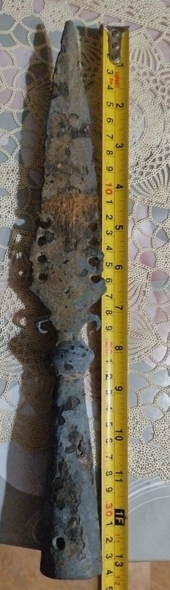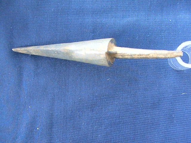 Добрый вечер. Создавал тему в другом разделе, была благополучно снесена. Вопрос по наконечнику. Найден в лесу под Кубинкой . Материал , похоже , оловянистая бронза . Вес 28гр.
