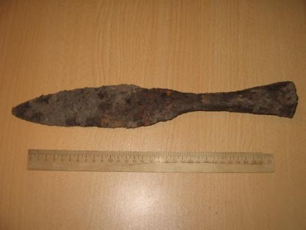 QUOTE(гело @ Sep 16 2010, 12:35) В связи со вчерашней находкой,хотелось-бы услышать ответ от спецов. А что? Наконечники красили Место находки Тульская область. В таком сохране попадается впервые.Видна красная краска. На черенке тоже.Наконечник не чищен и даже не мыт. Наша с товарищами версия... фантастическая..-" Наконечник ранее был найден...покрашен...и вновь утерян...и снова выкопан мной на селище.. Сохран очень отличен от обычно поднимаемых в данной местности. Забыл добавить: Длинна наконечника-9 см.В поперечнике в самой широкой части ширина лезвия-2 см. Такой сохран и красный цвет следствие кремации или иного воздействия огня. -------------------- Жизнь - вечный поиск...