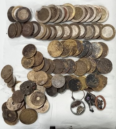 За пять часов в воде. Из четырех шикарных предметов, два со штампом 925. Но цепочка фуфло походу. Напряжённо с золотом у народа. Даже еврейский кулончик из гавна